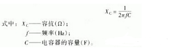 電容器對交流電有特殊的電阻特性,稱為容抗。容抗可由下式算出,即