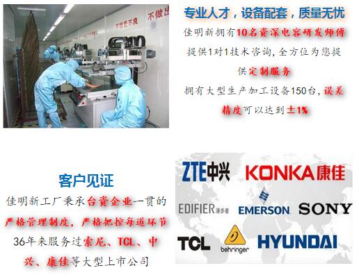 JMX電容為上千家客戶提供電容近20年,JMX電容已成為優(yōu)質(zhì)的電容供應(yīng)商之一,熱誠歡迎各界朋友蒞臨佳名興電容器工廠參觀,指導(dǎo)和業(yè)務(wù)洽談。電容器訂購熱線:+86 13927412413,了解電容器參數(shù):m.fjlxjj.cn |
