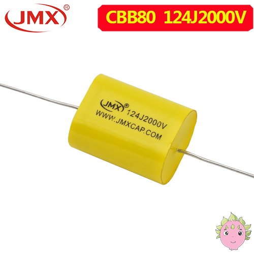 軸向電容CBB80為無感結構,用金屬化聚丙烯膜作電介質/電極繞制而成,
