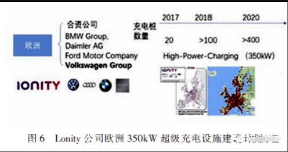 根據(jù)奧迪大功率充電分享的報(bào)告顯示,87%的受訪者更青睞于30min 內(nèi)充滿80%電量,而44%的受訪者更是希望能夠縮短至15min 以內(nèi)。而歐洲和中國都在布局大功率350kW 的充電接口標(biāo)準(zhǔn),并且已開始布局充電站。350kW 超級(jí)充電定義了1000V/350A 的充電標(biāo)準(zhǔn)和交互協(xié)議。其中Lonity 公司是德國汽車聯(lián)盟(VDA)、大眾集團(tuán)、福特汽車集團(tuán)、寶馬汽車集團(tuán)、梅賽德斯股份聯(lián)合成立的公司。歐洲以lonity 公司研發(fā)的350kW 充電樁為主,建立起第一個(gè)大功率充電網(wǎng)絡(luò),計(jì)劃2020 年安裝超過400 臺(tái),如圖6 所示。