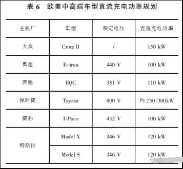 而歐美中高端車型直流充電能力偏強(qiáng),車型充電功率已達(dá)100-120kW,但是保時(shí)捷率先宣傳了其充電電壓為800V,且兼容了低電壓平臺(tái)的充電能力。詳見表6。