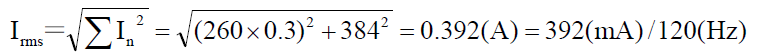 因?yàn)閷?shí)際電路中,紋波電流包含有各種頻率波形的紋波電流,所以對實(shí)際電路紋波電流的計算應(yīng)該由合成紋波電流Irms 得到: