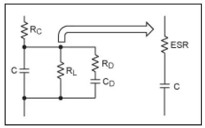 推算電容阻抗模型、計算ESR (結(jié)果的實部)時,ESR 是頻率的函數(shù)。這種相關(guān)性可以在下面簡化的ESR等式中得到證明: