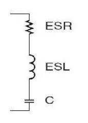 圖中ESR是電容的串聯(lián)等效電阻,ESL是電容的串聯(lián)等效電感,C才是真正的理想電容。ESR和ESL是由電容的制造工藝和材料決定的,沒(méi)法消除。那這兩個(gè)東西對(duì)電路有什么影響。ESR影響電源的紋波,ESL影響電容的濾波頻率特性。